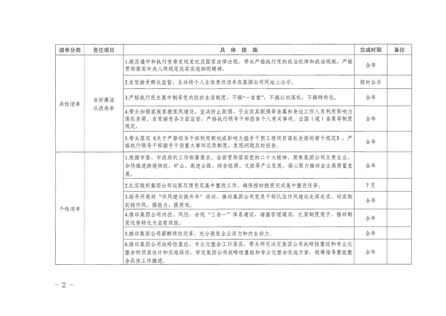 領(lǐng)導(dǎo)班子其他成員2024年度黨風(fēng)廉政建設(shè)“一崗雙責(zé)”清單(一)