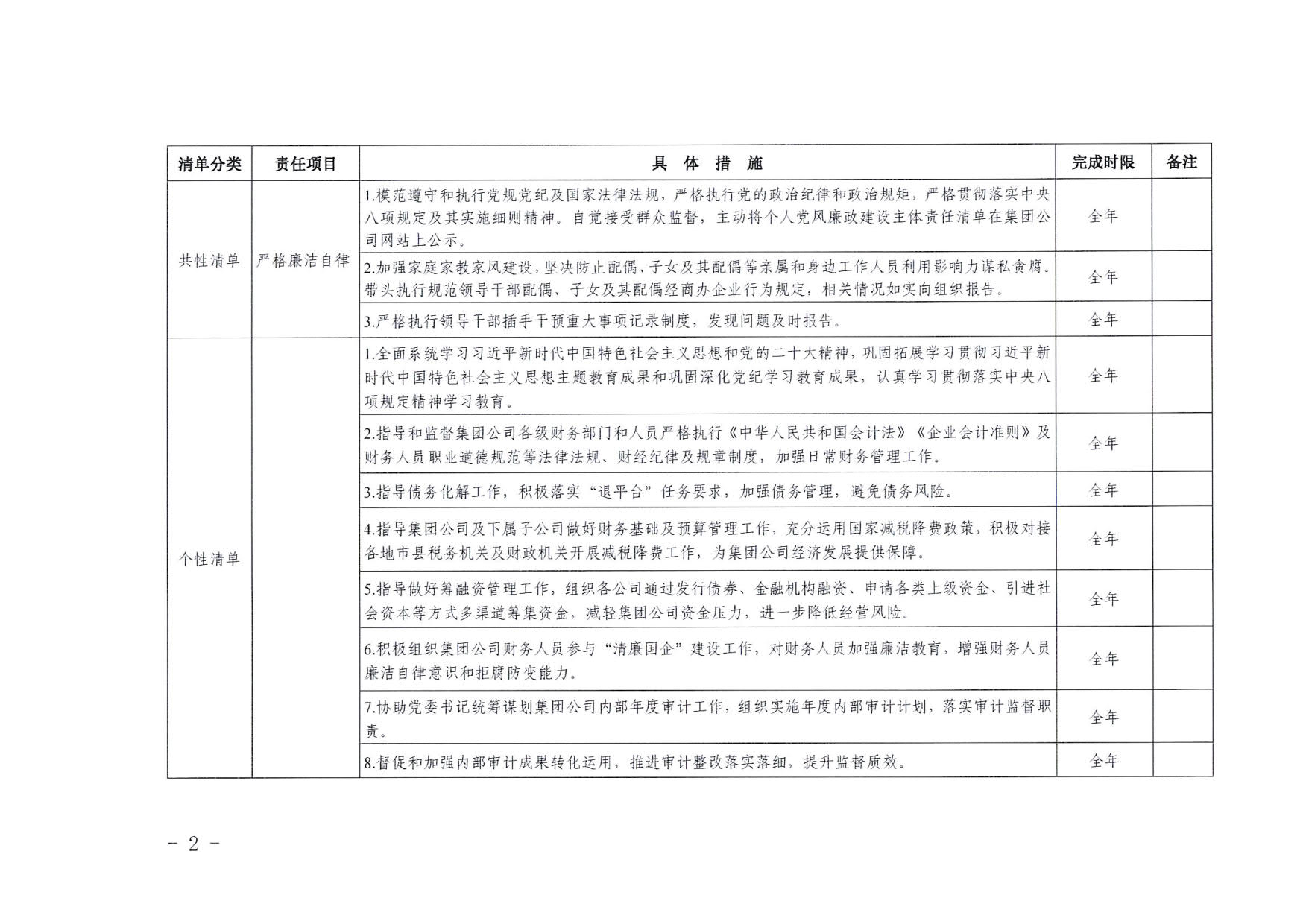 南寧交投集團領導班子其他成員2025年度黨風廉政建設“一崗雙責”清單(六)