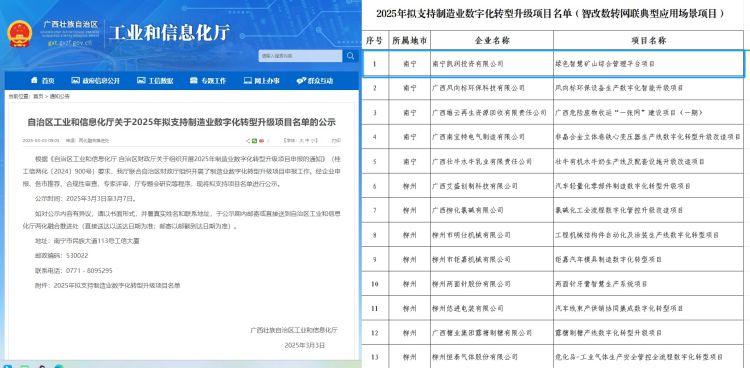 作為廣西建筑骨料礦業(yè)數(shù)字化轉(zhuǎn)型的先行者,南寧礦業(yè)集團緊扣國家 “智慧礦山” 建設(shè)戰(zhàn)略,以數(shù)據(jù)資產(chǎn)化為主線,在運營管理的上林礦山搭建“綠色智慧礦山綜合管理平臺”,培育“開采—生產(chǎn)—運營”全鏈條智能協(xié)同體系,實現(xiàn)安全、效率、生態(tài)的三維躍升,為露天礦山數(shù)字化轉(zhuǎn)型提供“南寧樣本”。“綠色智慧礦山綜合管理平臺”項目成功入選自治區(qū)工業(yè)和信息化廳2025年支持制造業(yè)數(shù)字化轉(zhuǎn)型升級項目名單,成為歷年來廣西唯一入選的骨料生產(chǎn)項目,標志著南寧市屬國有企業(yè)在礦業(yè)數(shù)字化轉(zhuǎn)型中邁出“堅實第一步”。