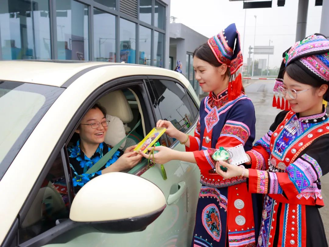 “跑了這么多地方,第一次在高速公路上體驗到這么有特色的活動,還有民族特色的小禮品,這一趟行程真是收獲滿滿!”旅客李先生途經(jīng)賓陽南收費站時感慨道。