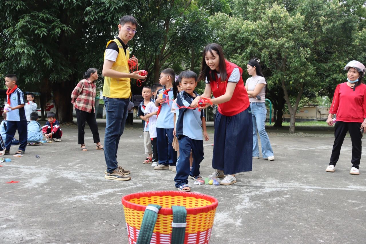 課堂結(jié)束后,在志愿者們的帶領(lǐng)下,孩子們來到教室外參與拋繡球、投壺、套圈等民族傳統(tǒng)體育項目。志愿者與孩子們分組協(xié)作、相互配合,完成了一項項挑戰(zhàn),激勵孩子們享受運(yùn)動的快樂,觀察到、感受到生活中的民族藝術(shù)的魅力,豐富了文化生活和情感體驗。