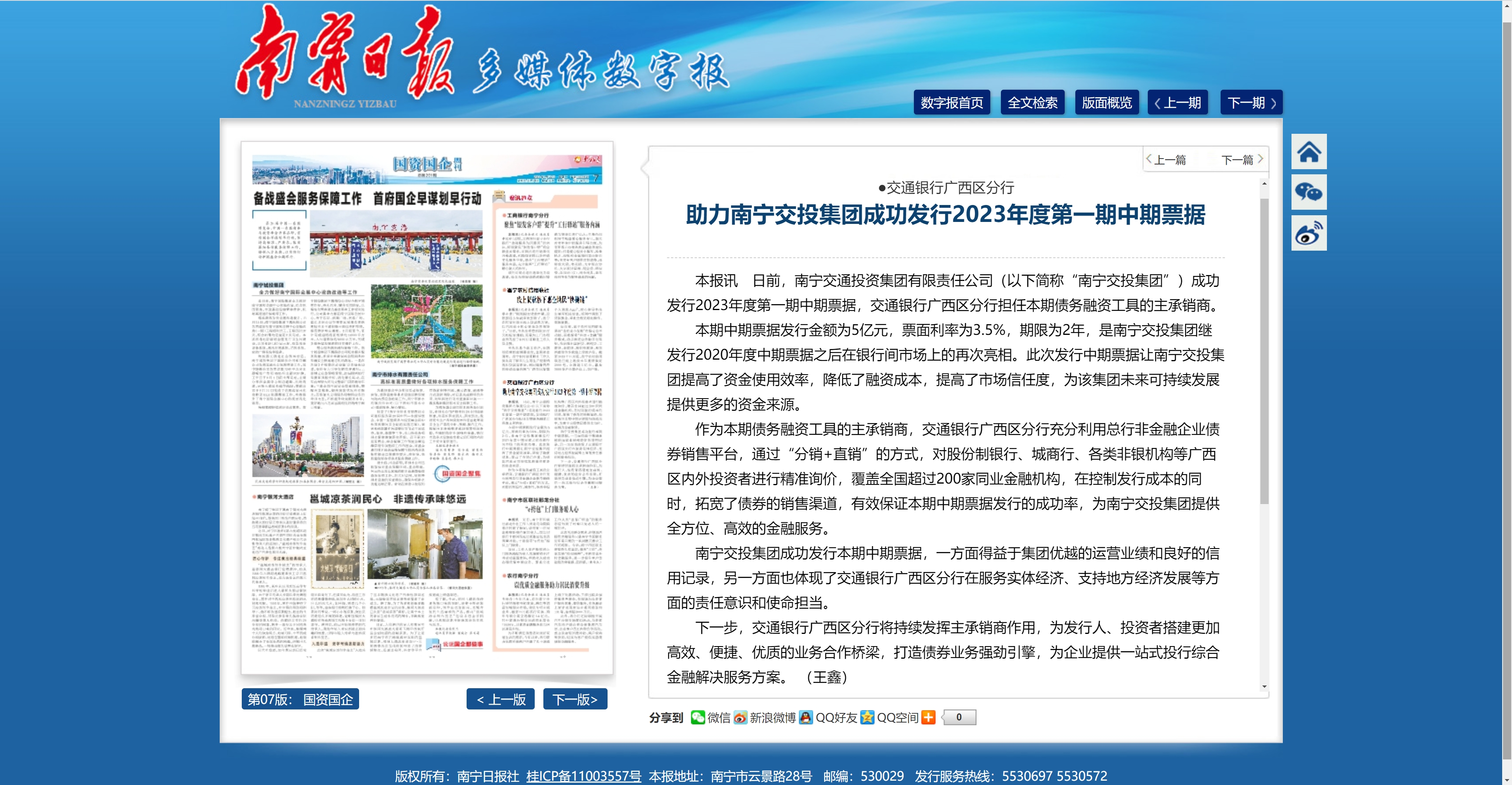 交通銀行廣西區(qū)分行助力南寧交投集團(tuán)成功發(fā)行2023年度第一期中期票據(jù)
