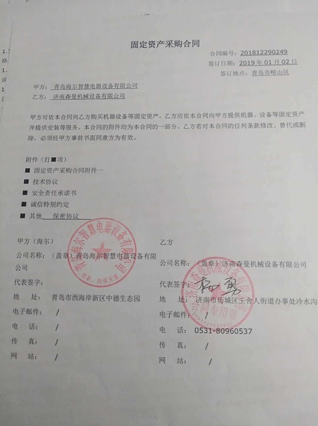 熱烈祝賀森曼機(jī)械喜簽海爾集團(tuán)型材切割線設(shè)備,同時(shí)祝賀森曼公司進(jìn)入海爾集團(tuán)采購(gòu)框架。
