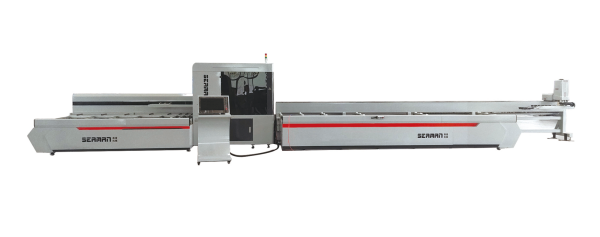 對(duì)型材數(shù)控優(yōu)化送料,連續(xù)切割、并對(duì)兩個(gè)斷面同時(shí)銑削榫槽。
